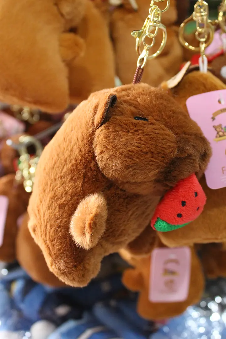 Llavero con forma de capibara con sandia. Ideal para llevar a todos lados